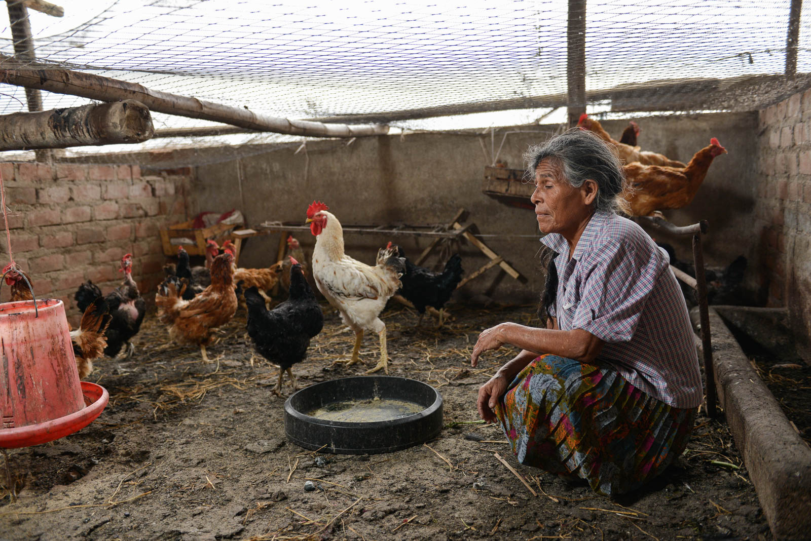 Dimas Morales keeps her hens for two-and-a-half years. At six months they lay their first eggs, and when they weigh seven kilos, she sells them. Dimas keeps various breeds of hens; she even brought one particular breed with her from the jungle.